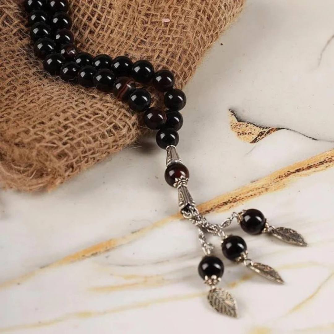 لكشري بلاك كريستال تسبيح وِد سلور تشين أكسنتس